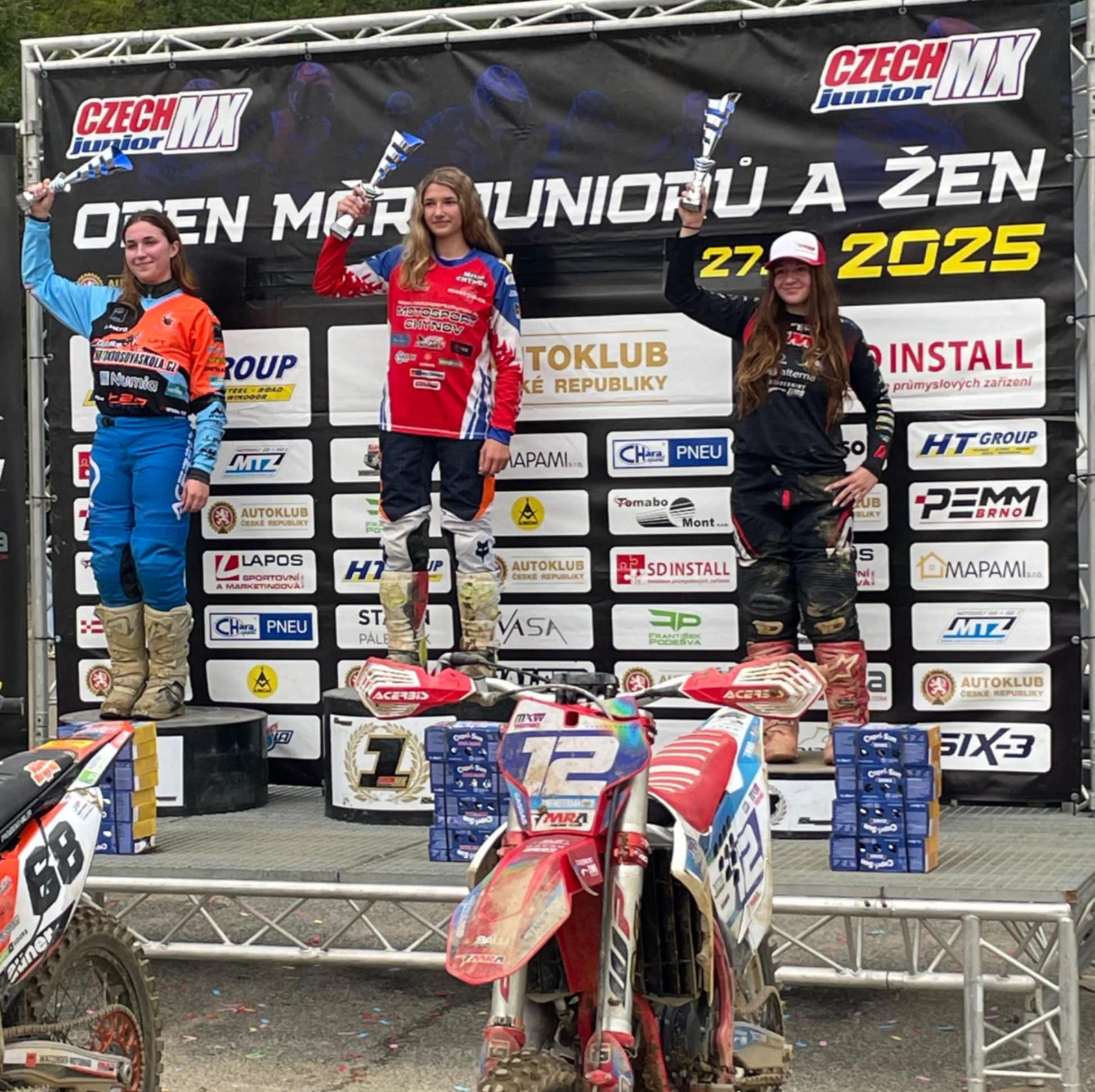 Týmová závodnice Motosportu Chýnov Joela Freudenthaler z Rakouska se stala druhou vicemistryní ČR v motokrosu žen (WMX) pro rok 2025! Na finálovém závodě MMČR Juniorů a žen uplynulý víkend v Jiníně potvrdila svou skvělou formu v závěru letošní sezóny a obhájila tak na náročné, blátivé trati vítězství z předchozího závodu z Pacova. Celkové třetí místo je v jejích čtrnácti letech a při letošní premiéře v seriálu MMČR obrovské překvapení a též historický úspěch v této kategorii. Gratulujeme a budeme se těšit na spolupráci v příští sezóně!