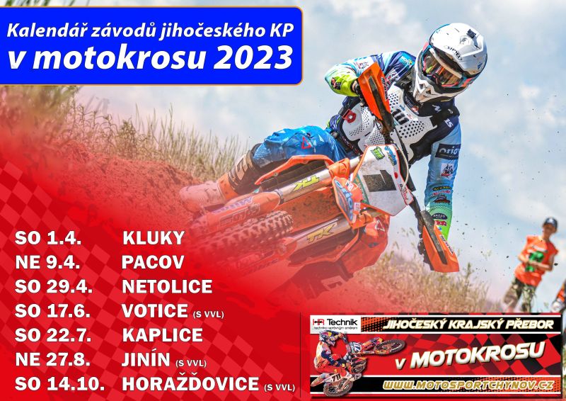 Přinášíme Vám kalendář jihočeského KP v motokrosu na sezónu 2023. Závodů jsme pro Vás nakonec připravili sedm. Šest ze sedmi tratích jsou mistrovské. Děkujeme všem pořadatelům za jejich ochotu pořádat jihočeský KP. Se závodníky se budeme těšit na viděnou na závodech!