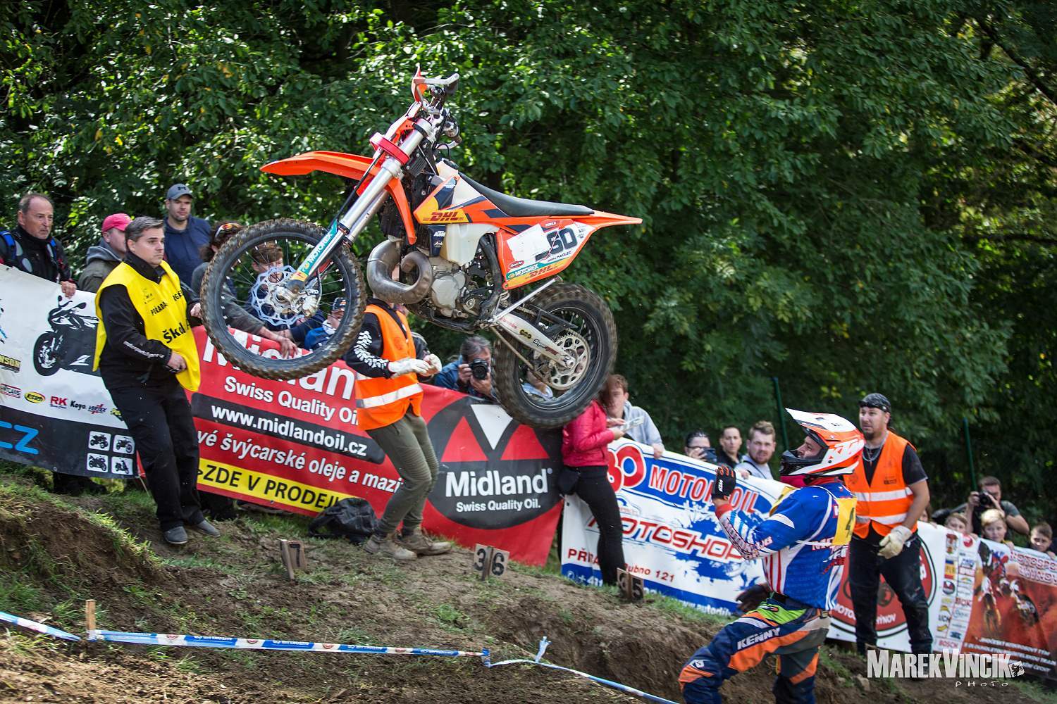 V hlavní kategorii Motokros+enduro to bylo napínavé až do konce. Po prvních dvou jízdách z pěti totiž překvapivě vedl Vlastimil Michalík z Tišnova. Při dalších pokusech ho však pokaždé zastavila největší překážka v profilu tratě – příčně uložená kláda na sedmatřicátém metru. Toho využili hlavní dva favorité závodu, jejichž výkon naopak gradoval. Počtvrté za sebou tak v Chýnově vyhrál úřadující mistr Evropy v motokrosu Martin Michek z MX Shopu Sekerka. Překonal tím další z rekordů sedmatřicetileté historie tohoto závodu. Druhé místo jen s těsným rozdílem vybojoval Roman Körber z Motosportu Chýnov, který měl v jedné z přestávek také exhibici na motocyklu.