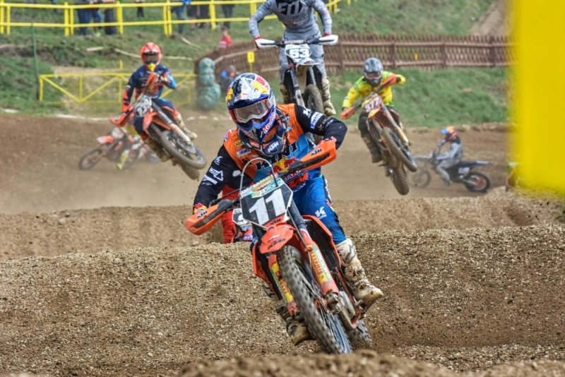 Zdařilý návrat předvedl při nedělním druhém závodě italského mistrovství v Ottobiane čerstvě 17letý Rene Hofer (na snímku s číslem 711). Vyjímečný rakouský talent (a náš dobrý známý) se objevil na závodní trati po pěti měsících od těžkého zranění v závodě německého mistrovství ADAC v Tensfeldu, které předčasně ukončilo jeho skvěle rozjetou loňskou sezónu. Čtyři měsíce bez motocyklu se už nedaly vydržet a tak dostal Rene po úspěšném uzdravení začátkem roku od svých lékařů svolení k zahájení tréninku. A po měsíci přípravy odvedl výkon, který jeho fanoušky příjemně překvapil: do závodu třídy MX2 v Ottobiane se kvalifikoval jako desátý ve své skupině a vlastní závod zvládal na výbornou! V silně obsazeném startovním poli se od začátku držel v první desítce a po pár kolech už jezdil šestý! V závěru závodu se sice na těžké písčité trati zdržel pádem a nakonec dojel šestnáctý, takže se kvalifikoval do společného superfinále obou tříd. Do něj ale už nenastoupil – napoprvé toho bylo dost a přeci jen se necítil po zranění ještě stoprocentně fit.