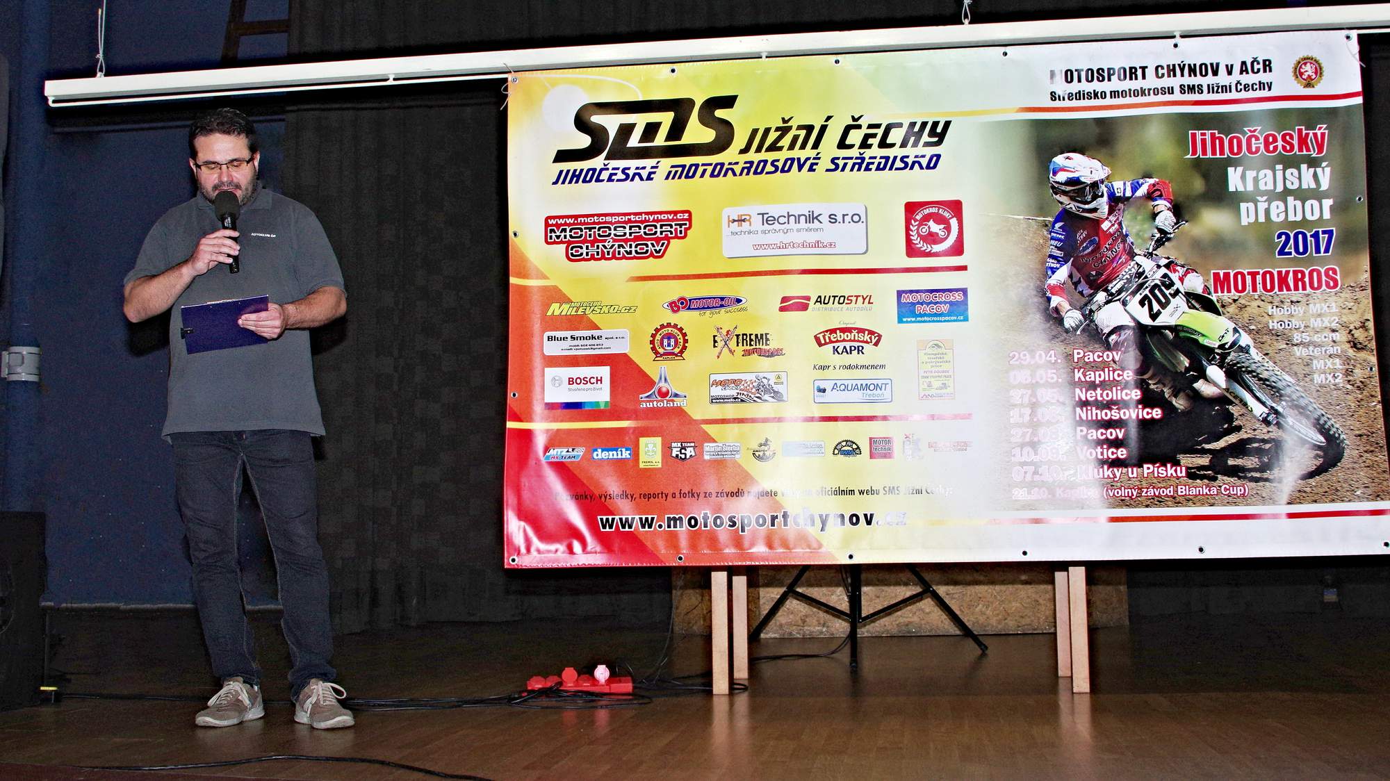 V sobotu, 11. listopadu proběhlo v kulturním domě v Chýnově vyhlášení sezóny Jihočeského KP v motokrosu 2017. Za účasti více jak 150 lidí včetně fotografů a novinářů byli vyhlášeni krajští přeborníci pro letošní rok. Stručně se zhodnotila sezóna, představeno bylo i několik statistických čísel a zmíněny byly již známé změny na sezónu 2018 (například elektronické podávání žádostí o licence AČR nebo chystaná změna provozovatele jinínského areálu). Večeře byla pro každého přítomného servírována na náklady střediska, poměrně rychle zasyčel i do placu daný sud piva.