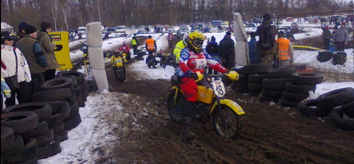 Tradiční závod fichtlů se jel dnes na letišti v Soběslavi. Počasí bylo kolem nuly a počet diváků se hrubým odhadem mohl blížit tisícovce. Stovka více či méně připravených fichtlů se rozdělila do dvou kategorií - Klasik a Sport. Neznám přesně ta pravidla, co je klasik a co už sport, ale některé ty fichtly v kategodii Sport byly vyloženě krosky s nabroušenými motory a laděnými výfuky, nicméně i v té kategorii Klasik mi přišlo, že některé stroje točily daleko více otáček, než klasický fichtl. Tak jako tak je to stejně alchymie, aby to vydrželo hodinu vrčet v celkem slušném zápřahu. Hodinu totiž jela kategorie Sport, stejné trvání jízdy patřilo i klasikům. Nejprve odstartovala půlhodinu po poledni kategorie Sport. Zde za náš tým startovali Pavel Fučík junior a Milan Kos. Pavel Fučík skončil šestý, Milan Kos dokonce čtvrtý. Tuto pěknou příčku vybojoval i navzdory tomu, že se mu zasekl v karburátoru už v první polovině jízdy plný plyn. "Musel jsem v zatáčkách vymačkávat spojku a motoru jsem pomáhl tím, že jsem jezdil vyšší kvalty, abych ho neuvařil. Na vedoucího Jirku Lovětínského bych ale neměl ani tak..." přiznal s úsměvem na rtech v cíli Milan a složil tak poklonu už jednapadesátiletému borci z Dačic, který je někdejším jihočeským motoskijörigovým matadorem, hvězda supermota a vůbec všeho, co má kola a jezdí to po něčem, co klouže. "Motardy už nejezdím, ale kromě fichtla mám doma ještě trialku. Mám poslední dobou problémy se zápěstím a tak se už do ničeho víc raději už nepouštím. Na konci sezóny se ale určitě chystám na trialce přijet do Chýnova, pokusit se zdolat Strmý vrch", hodil svým soupeřům rukavici uznávaný motocyklový matador Jirka Lovětínský. Na startu této jízdy jsme viděli i známého mechanika a člena Sportovní motokrosové komise SMS Jižní Čechy Jardu Vrchotu, který si nevedl vůbec špatně, cekově skončil desátý a byl zároveň vyhlášem i nejstarším jezdcem z celého stratovního pole.