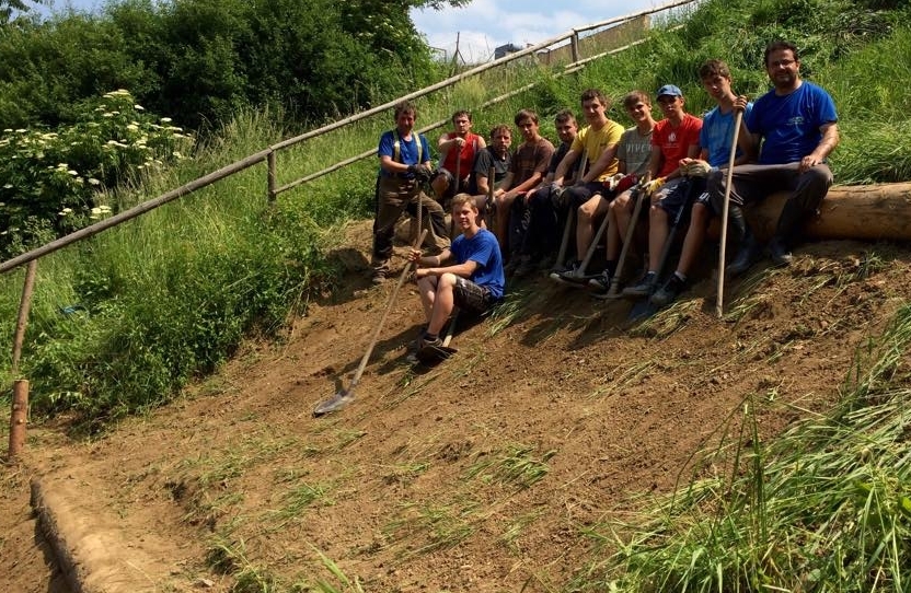 V neděli proběhla velká brigáda na strmém vrchu v Chýnově. Loňský ročník již nevydržela horní kláda, která se během loňského posledního závodu rozlomila. Ve špatném stavu byla i kláda spodní, a tak jsme se rozhodli, že obě klády vyměníme najednou. A nechtěli jsme to nechávat na poslední chvíli, aby si to přes léto hezky sedlo. Hledali jsme tedy vhodný termín, kdy bude hodně sucho, aby se do těžko dostupného prostoru mohla dostat těžká technika. Hlavně díky její pomoci jsme přes kladky dostali dvě nové, téměř půltunové klády klády do svých míst v horní polovině kopce. Pět až deset let by tam měly vydržet, než je zase čas a motorky zničí.
